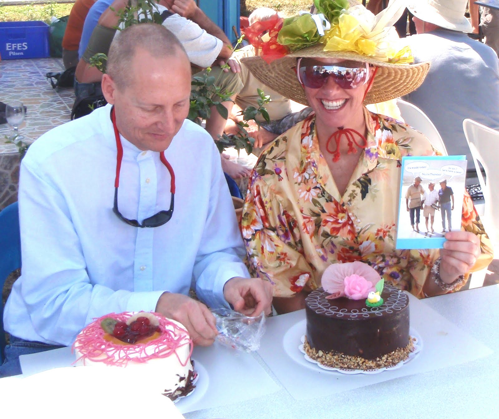 Katie’s birthday falls on Easter this year so the weekly Sunday BBQ at the Finike Marina served as a good venue for all the festivities.
