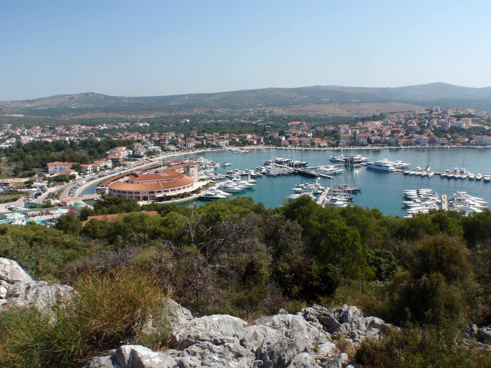 We had a nice five day second stay in Rogoznica with walks around the island, around the bay to the marina to view the mega-yachts, past dragons eye lake up to the to the top of a hill overlooking the town and marina, across the isthmus to a beach, and to the produce and fish markets near the Konzum (safe shopping) supermarket. Uvala Saline offered all around protection and we even tried the anchorage at the head of the bay that would be good in a NE blow (55 ft, 43d31.81’N, 15d58.32’E).