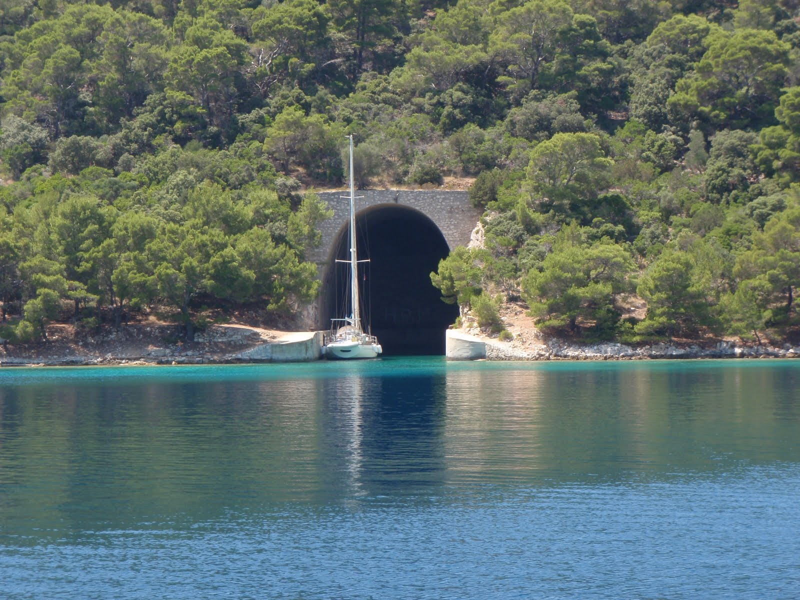 The Lastovo Archipelago is a Nature Park, has a clearance port at Ubli and got us 30 miles further on towards Malta. As on Mljet, Dugi and in Skradin we had no issues with paying a reasonable per person fee for being in a Nature Park. Hopefully any money left after maintaining modest park infrastructure goes toward the general fund and benefits the country’s population. As predicted, we had to pay a 20 KN ($US4) per person (per day) entrance fee to some friendly park rangers who welcomed us to Lastovo in their big inflatable. We anchored in Uvala Kremena, Velji Lago (80 ft, 42d45.43’N, 16d48.73’E) next to an old submarine pen. Lastovo as a military outpost is strategically important and was off limits to visitors for many years. Some of the military infrastructure is being re-used as witnessed by the two boats moored last night inside the submarine pen.
