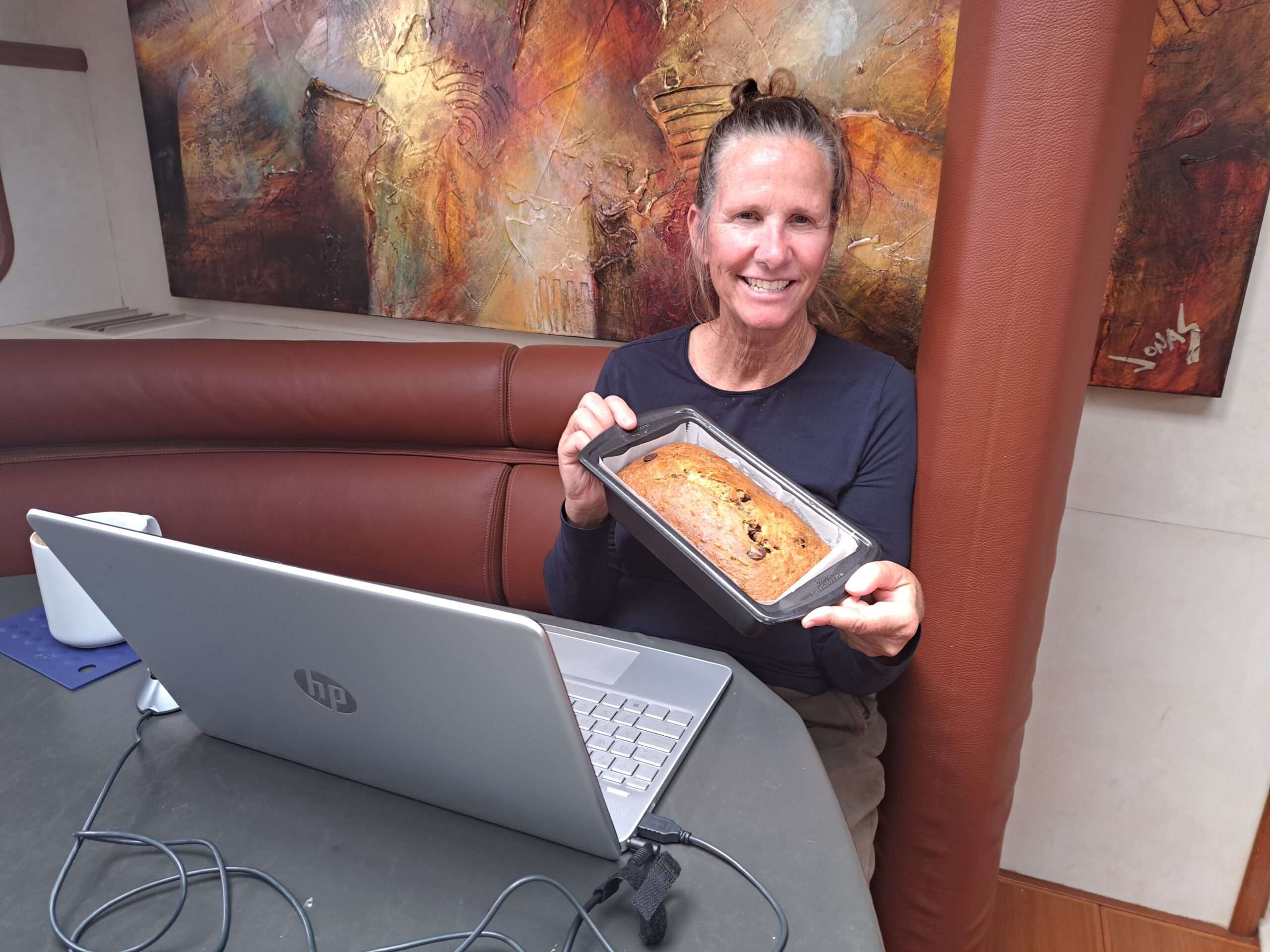 while Katie baked a fresh banana/chocolate chip bread.
